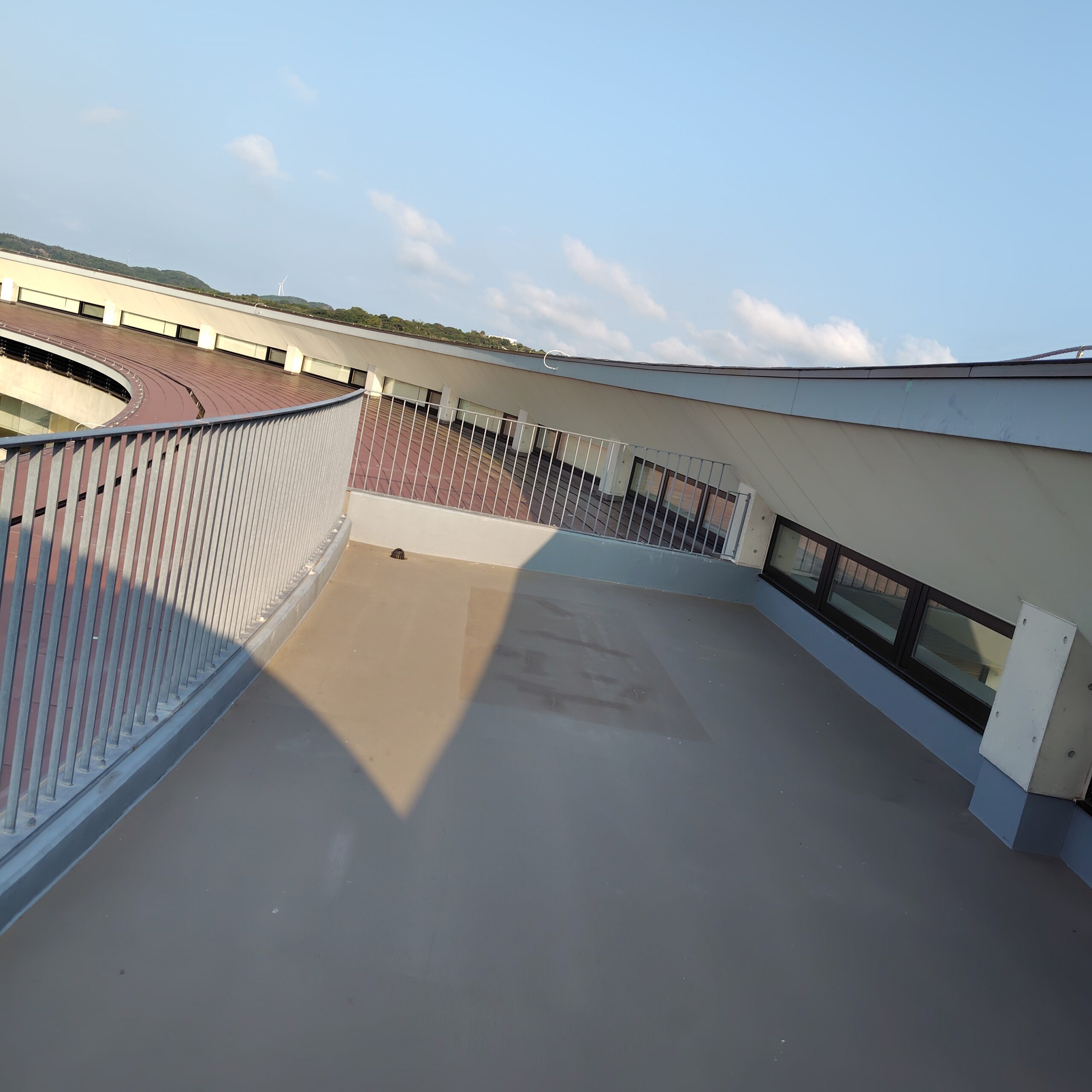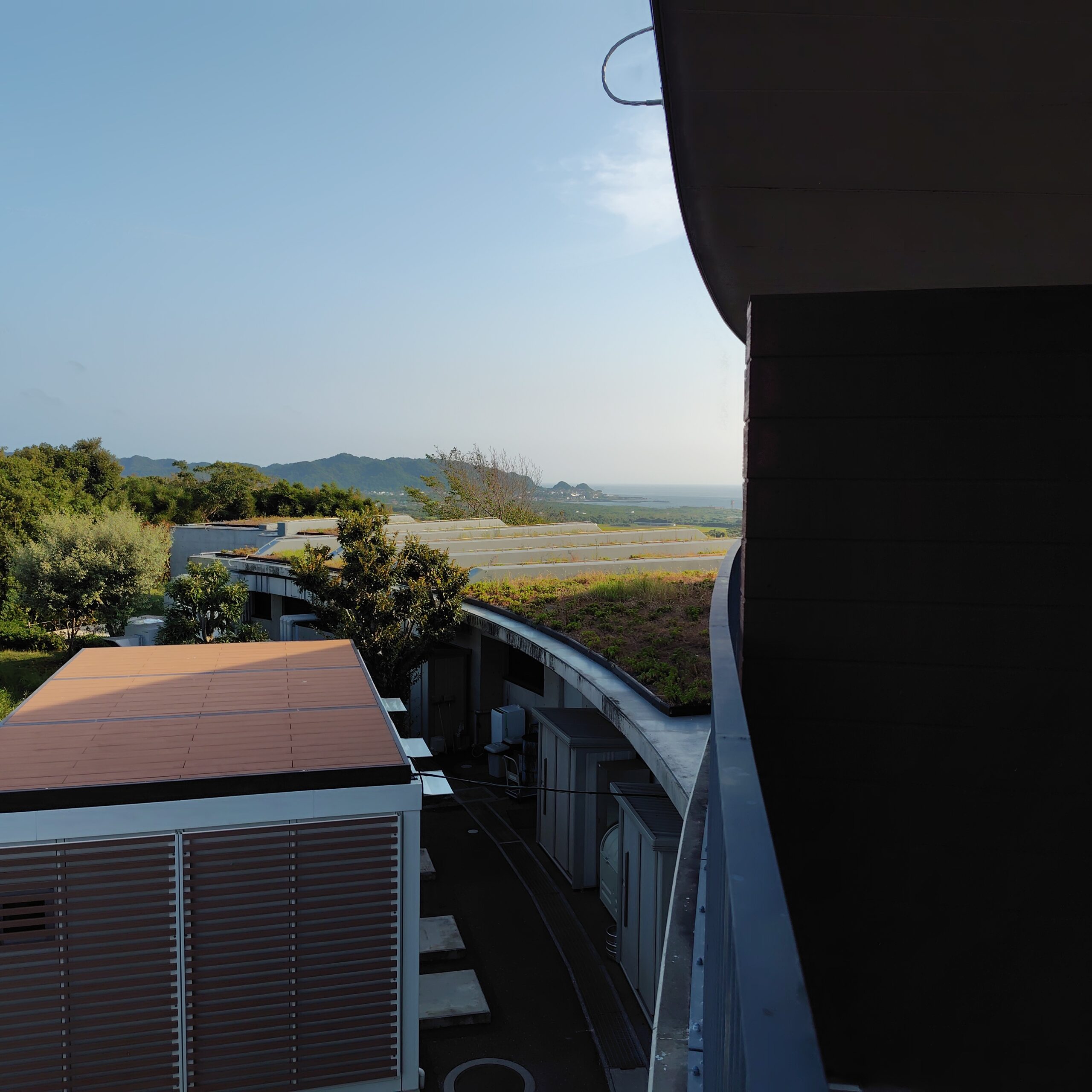 屋上に行くことができる階段もありました。あいにくの曇り空だったため夜の星は見れませんでしたが、周りがくらいので星空観賞も楽しそうです。