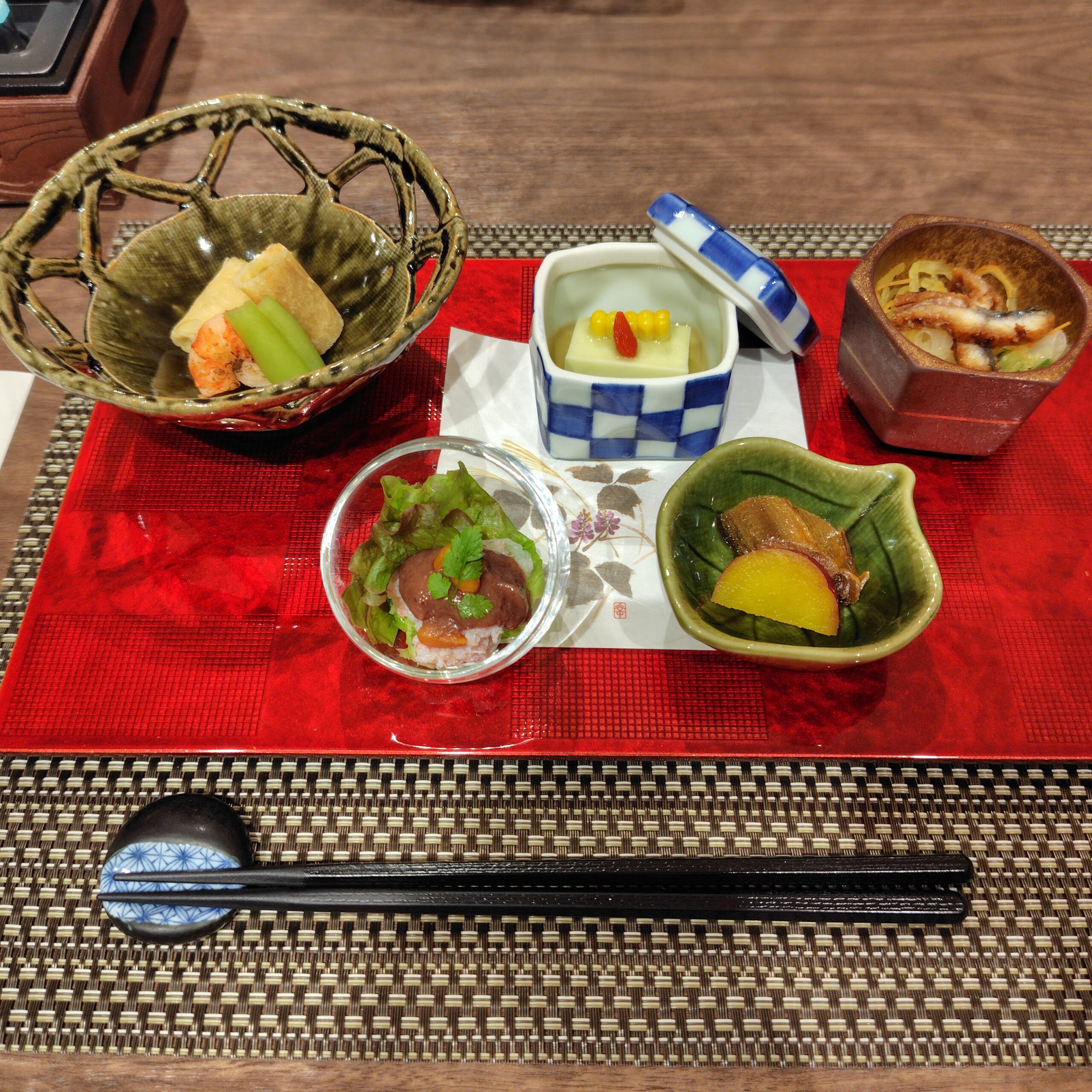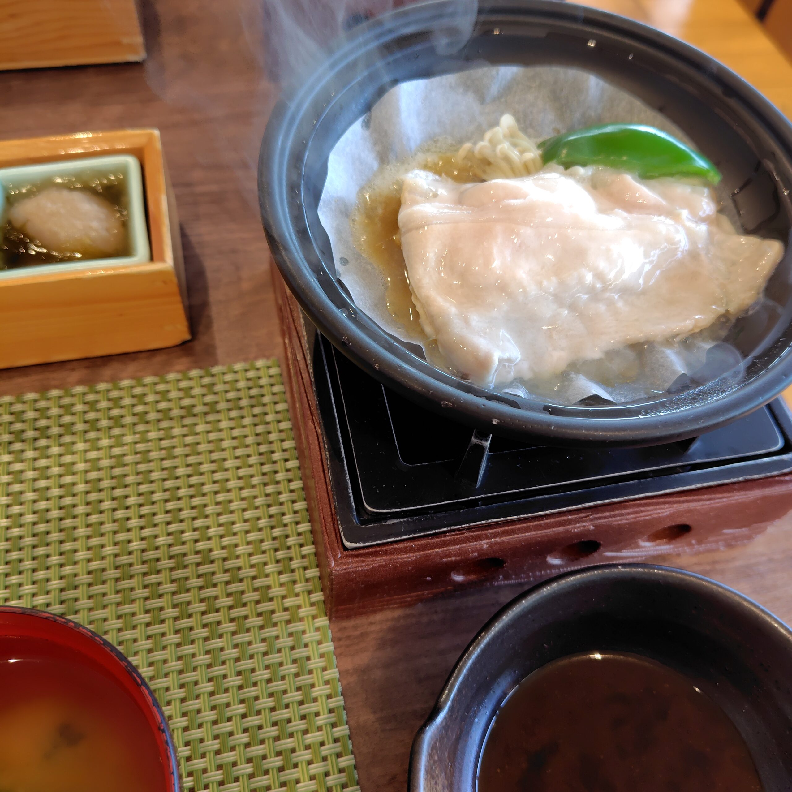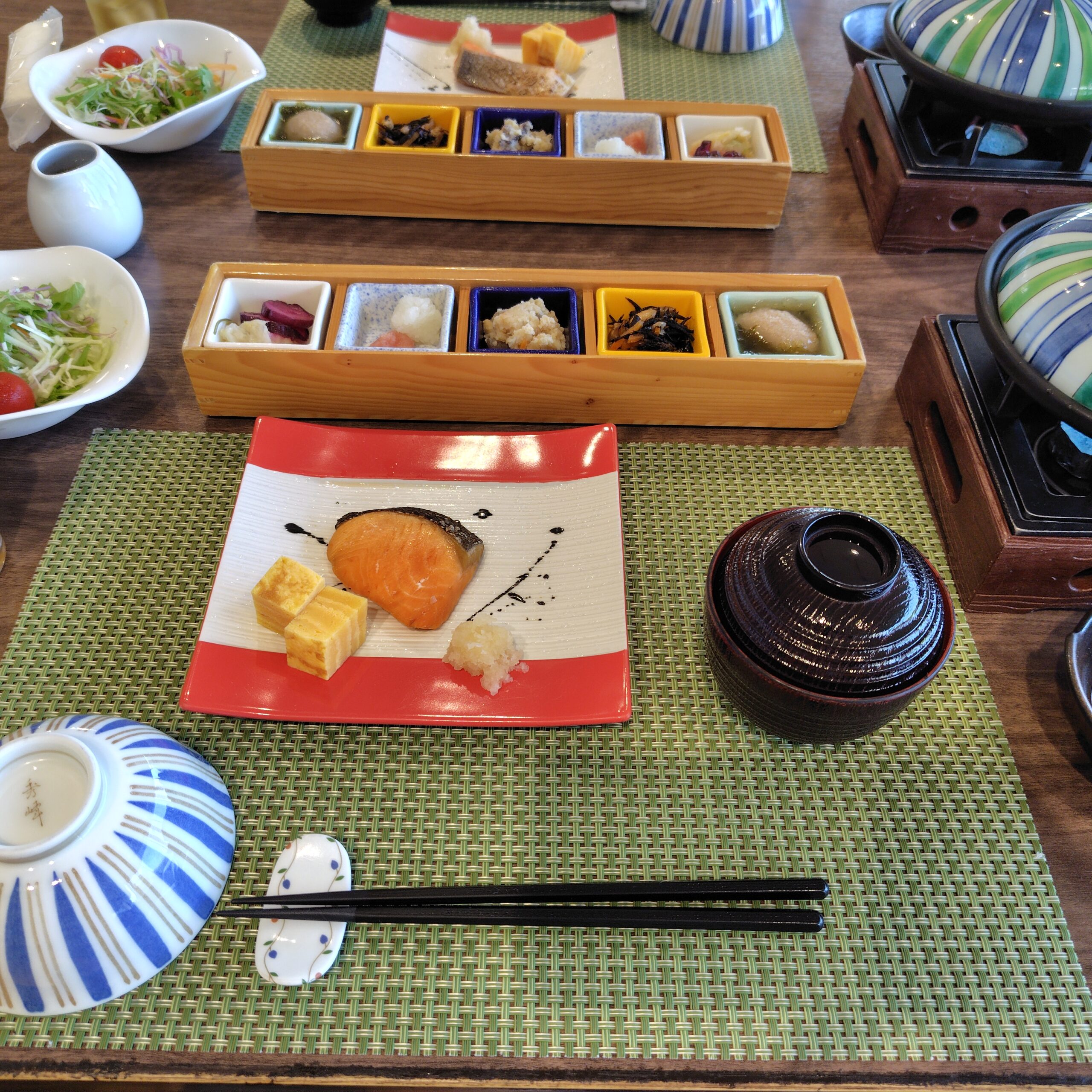 朝食は小鉢に入ったご飯のつまみとお肉の陶板蒸し?でした。朝から豪華!!